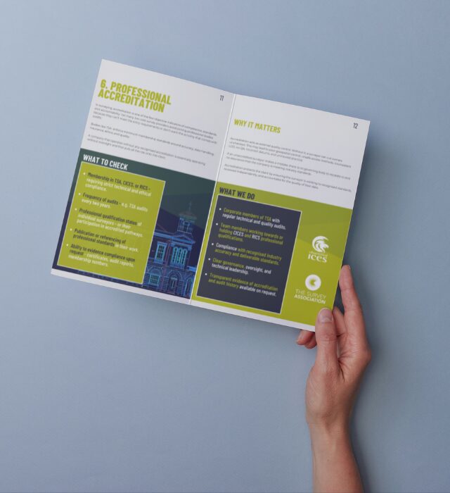 Whether you’re an architect, engineer, project manager, contractor, home owner or client-side professional, the Survey Buyers Guide gives you the right questions to ask. We have no doubt it will give you the confidence to compare survey quotes on substance, not assumptions.